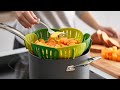 Steam your food with ease and without a mess with the Joseph Joseph Bloom Folding Steamer Basket - Green.